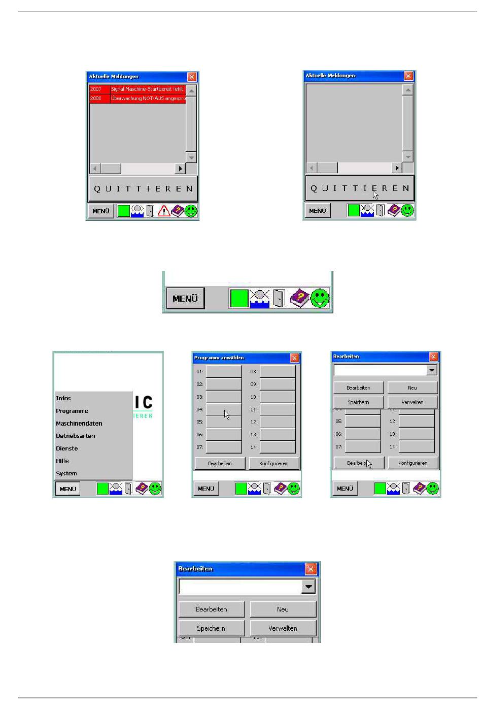 Zuerst müssen die Meldungsursachen beseitigt und danach die Meldungen quittiert werden. (Kapitel