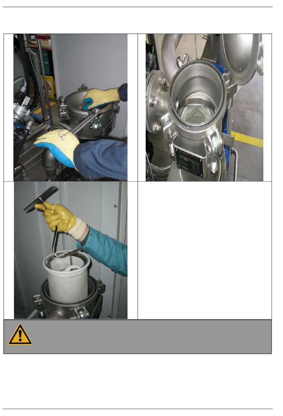 Feinstfiltergehäuse fest anziehen. Nach Unterdrucksetzen Dichtigkeit kontrollieren.