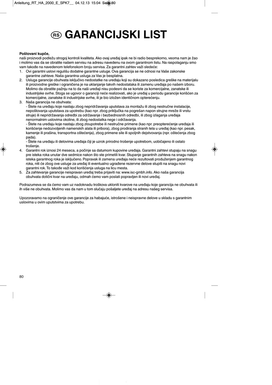 5. Za zahtevanje garancije neispravan uređaj treba prijaviti na: www.isc-gmbh.info. Ako naša garancija