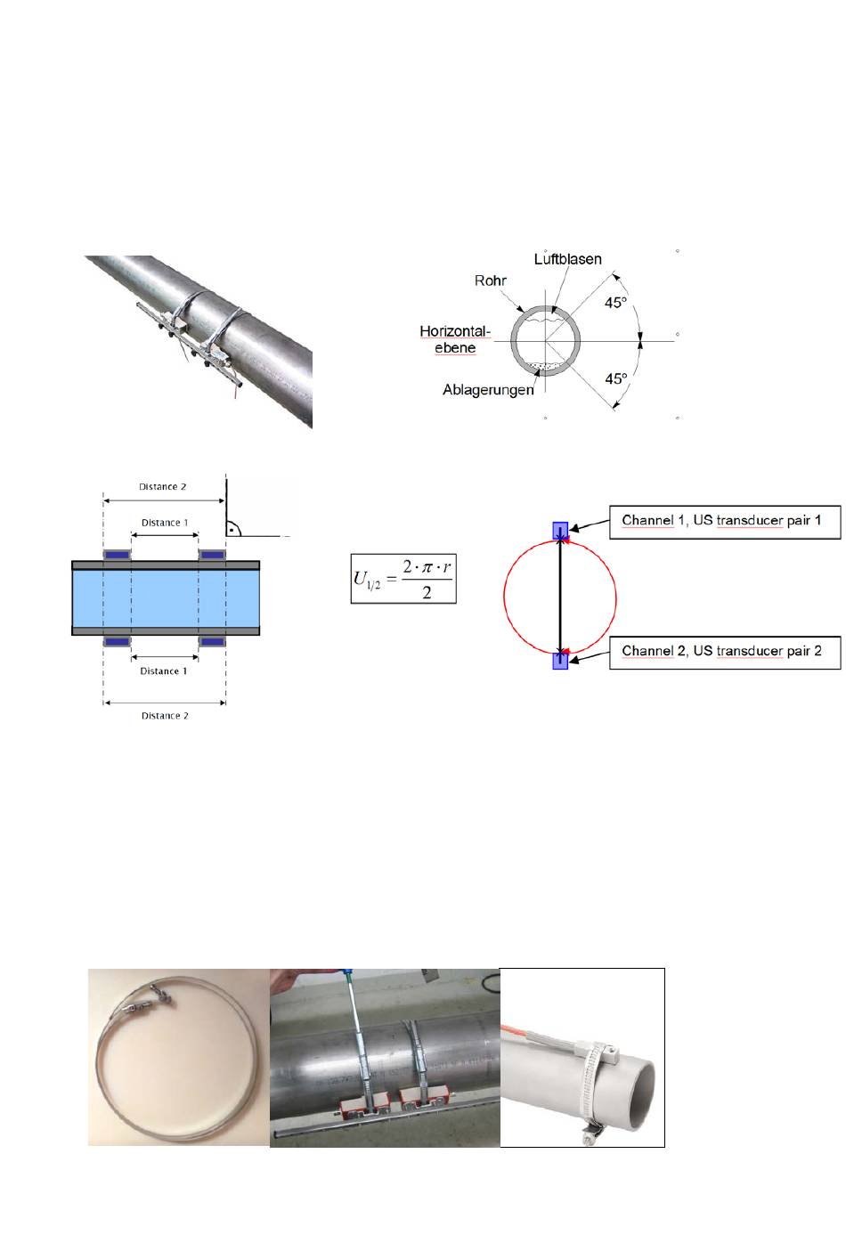 13. Die Ultraschallwandler sind mit Metallspannbändern auf der Rohrleitung fixiert. Die