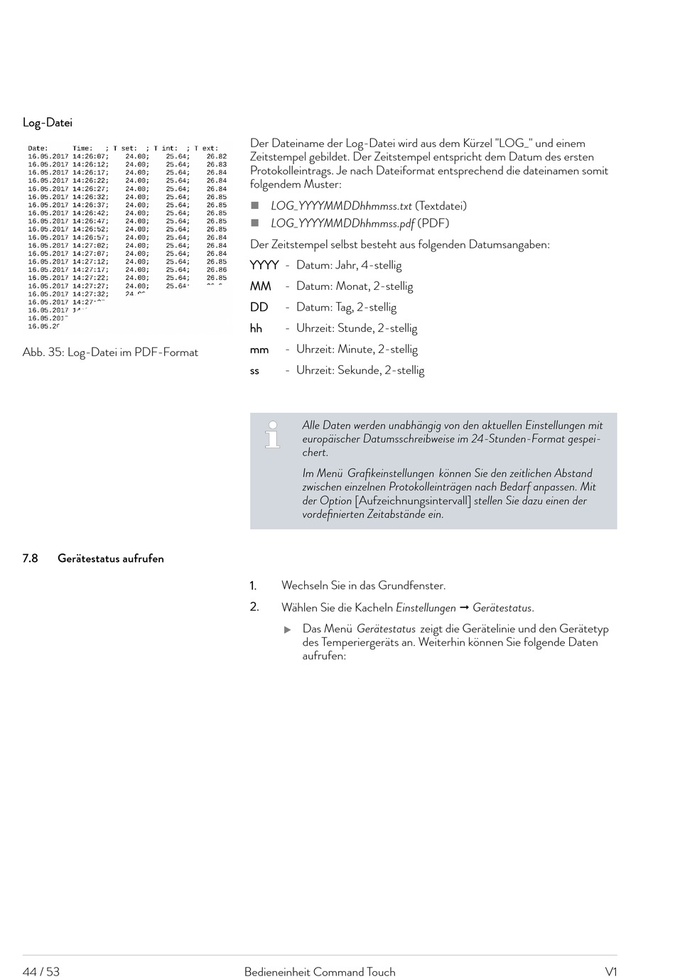 des Temperiergeräts an. Weiterhin können Sie folgende Daten
