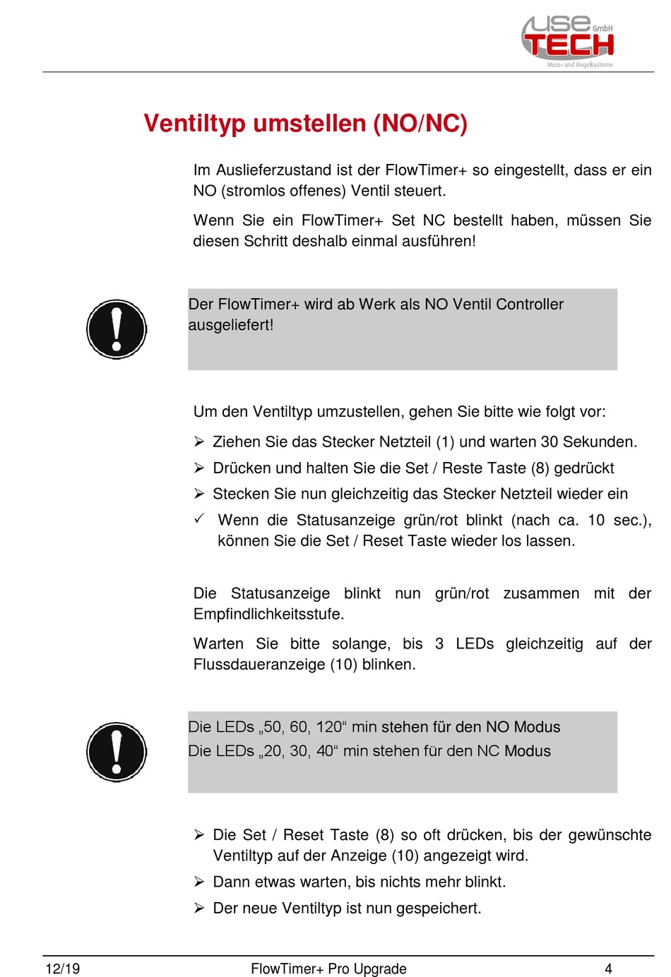 Wenn Sie ein FlowTimer+ Set NC bestellt haben, müssen Sie
