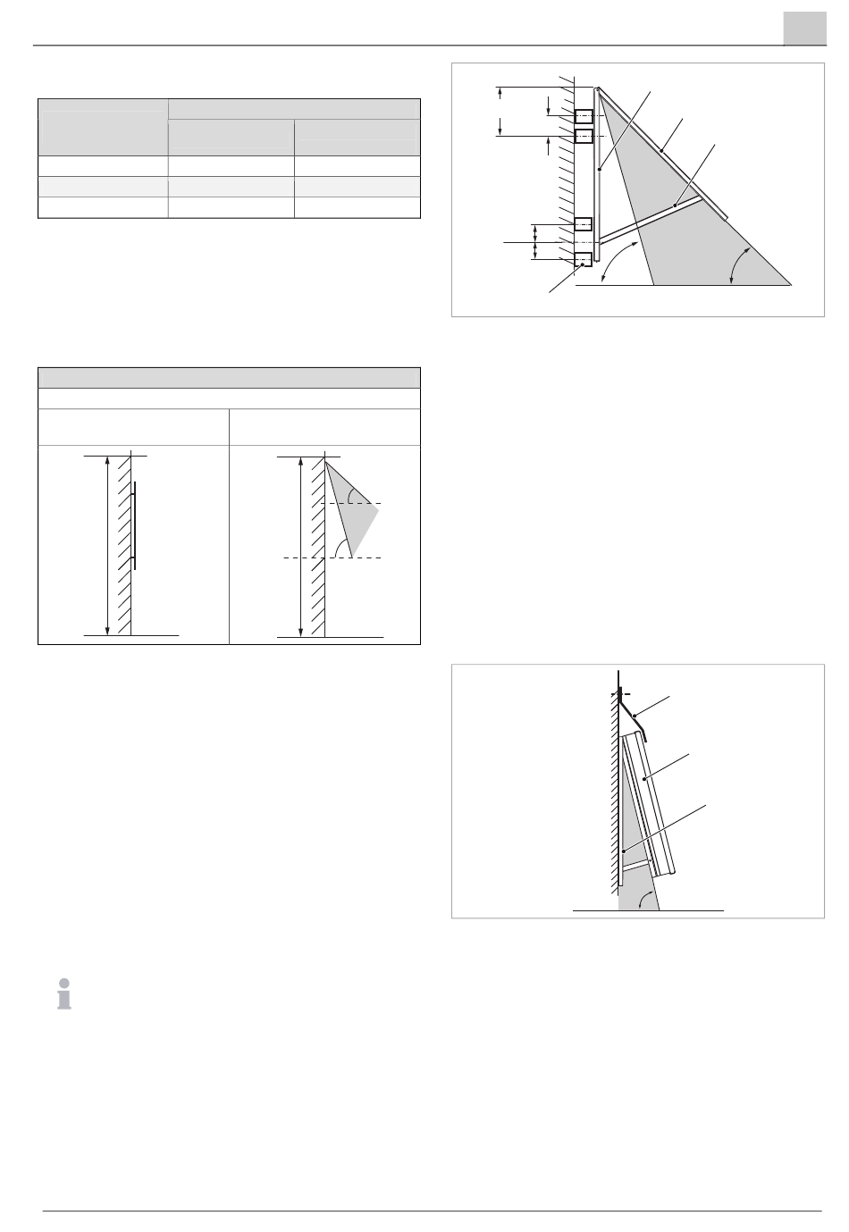 Con gli angoli maggiori di 60° (ad es. montaggio vertica-