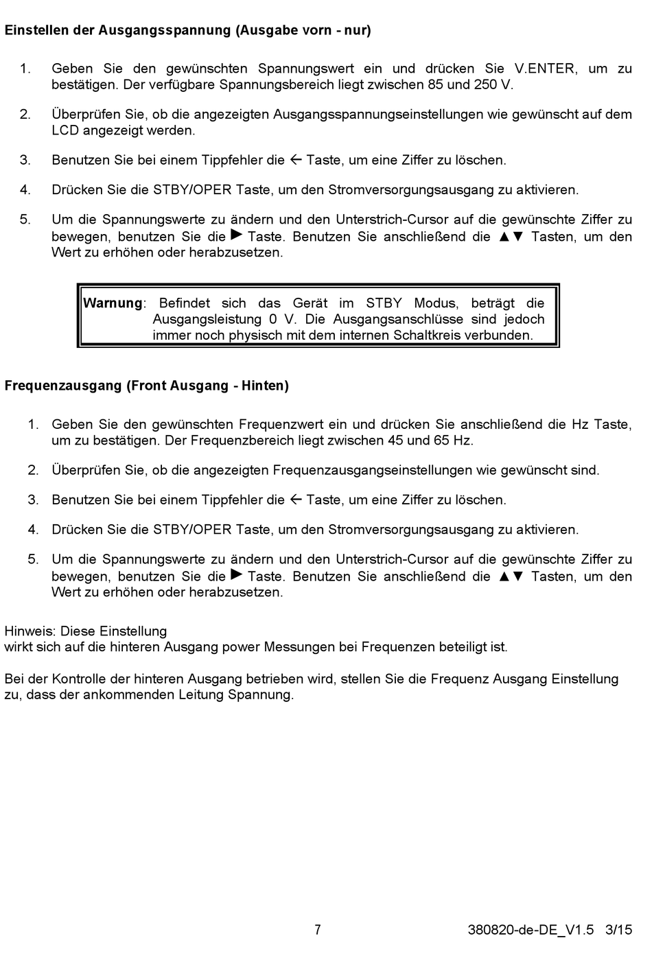 4. Drücken Sie die STBY/OPER Taste, um den Stromversorgungsausgang zu aktivieren.