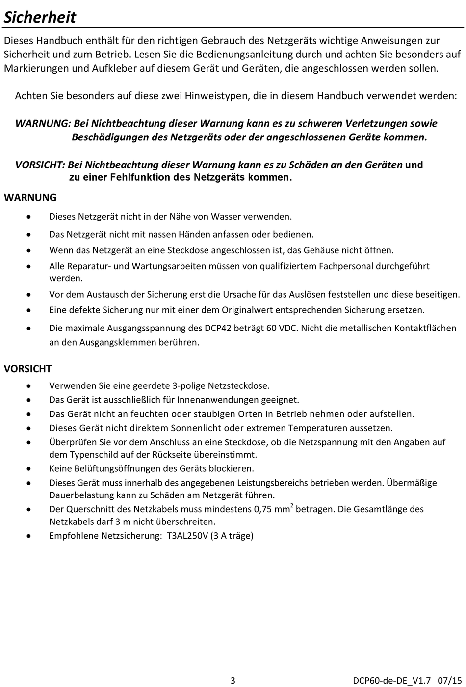 Dieses Handbuch enthält für den richtigen Gebrauch des Netzgeräts wichtige Anweisungen zur