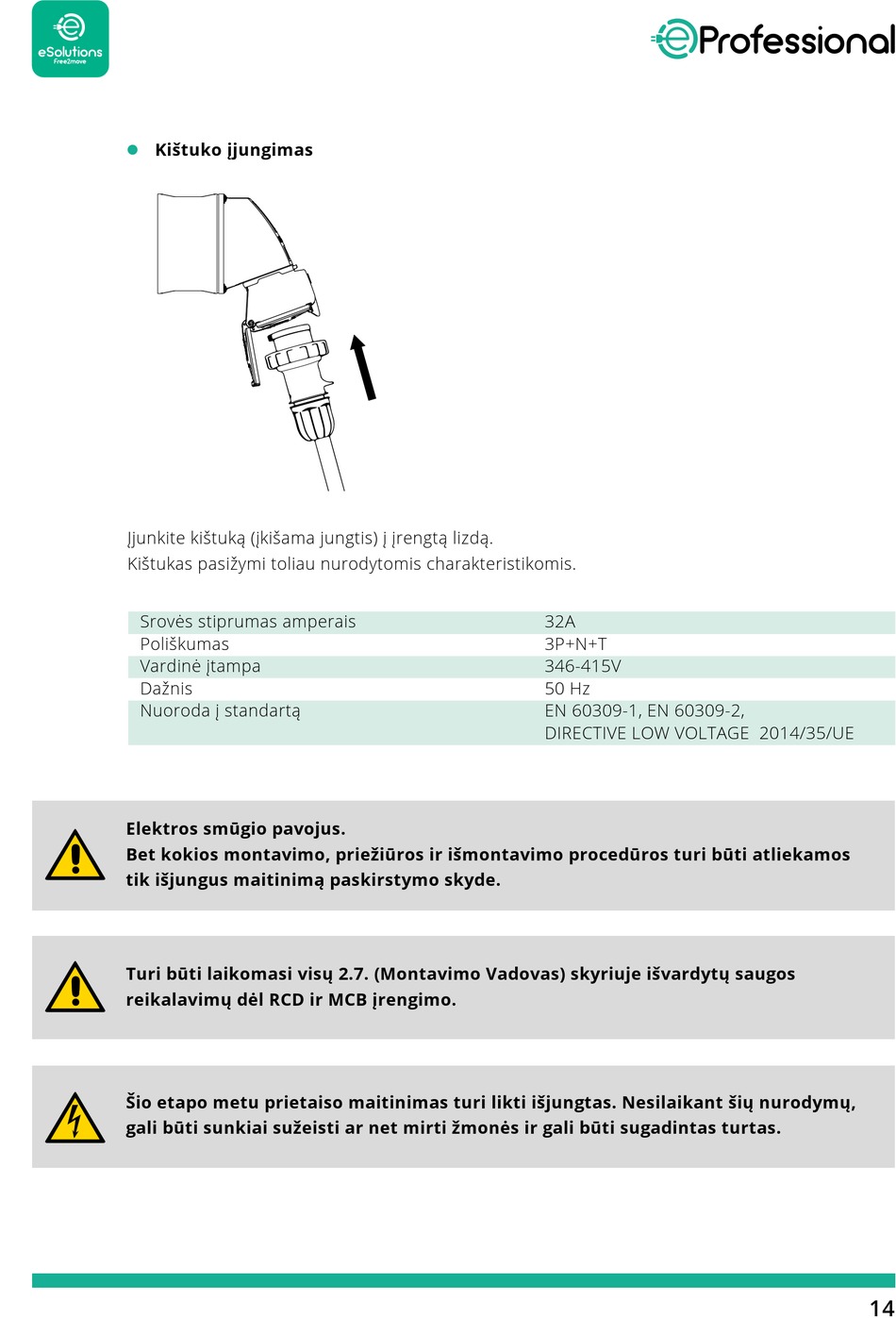 Turi būti laikomasi visų 2.7. (Montavimo Vadovas) skyriuje išvardytų saugos