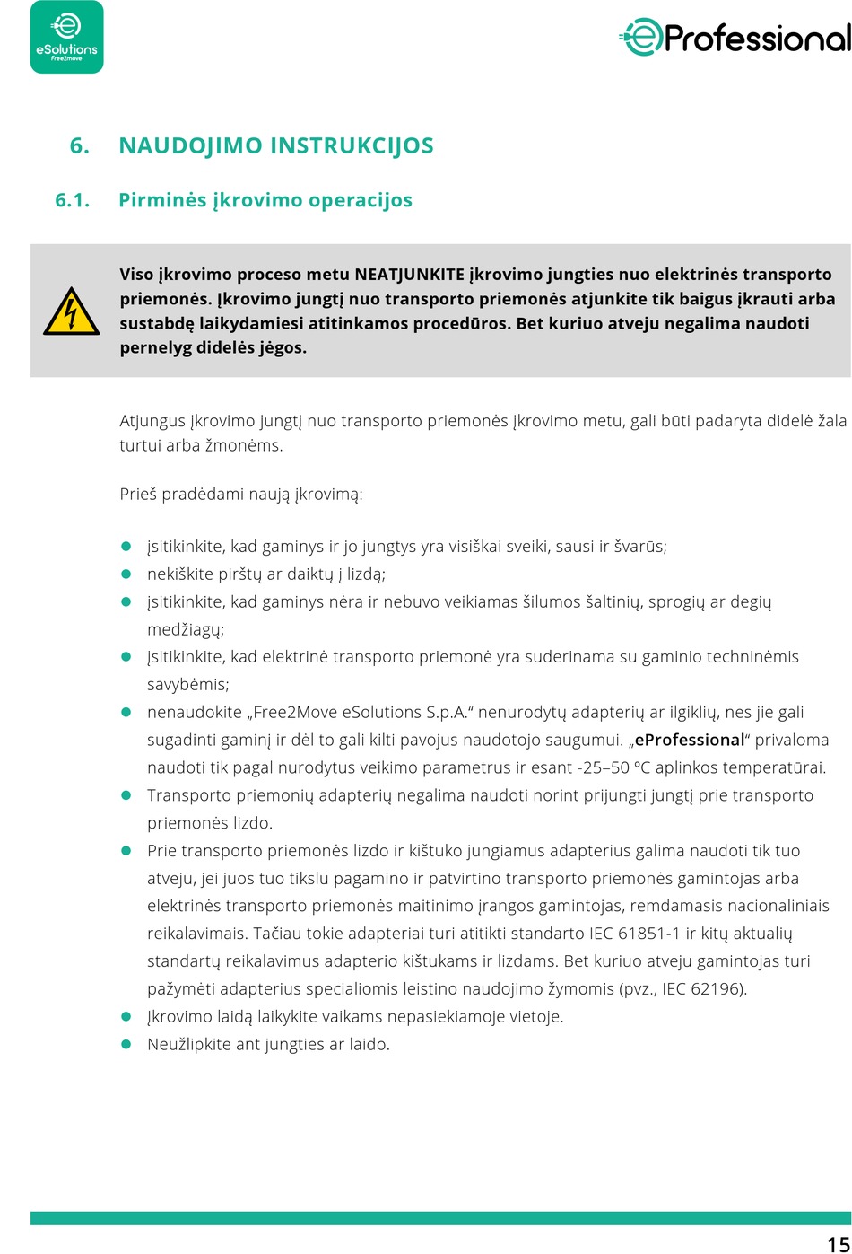 reikalavimais. Tačiau tokie adapteriai turi atitikti standarto IEC 61851-1 ir kitų aktualių