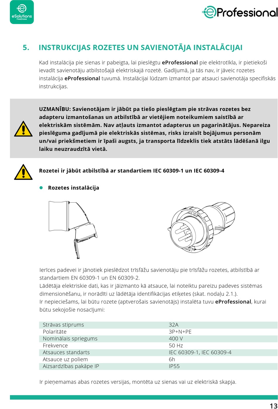 ievadīt savienotāju atbilstošajā elektriskajā rozetē. Gadījumā, ja tās nav, ir jāveic rozetes