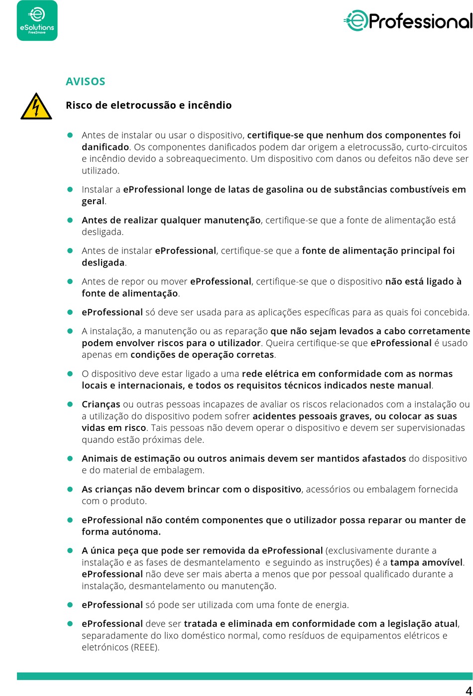 podem envolver riscos para o utilizador. Queira certifique-se que eProfessional é usado