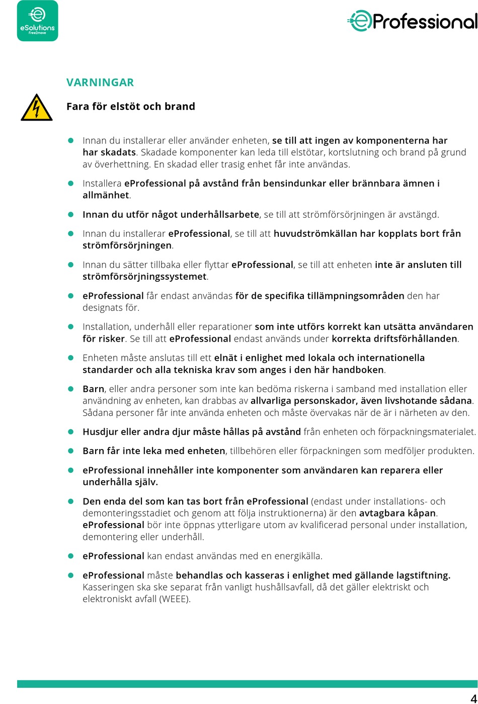 för risker. Se till att eProfessional endast används under korrekta driftsförhållanden.
