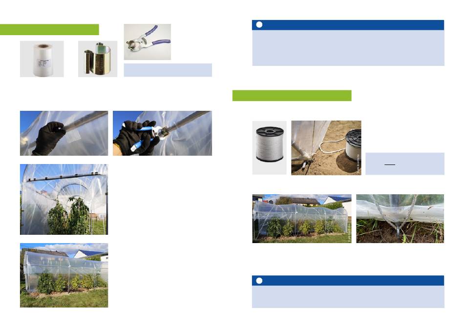 Die Ohr-Clips dürfen nicht direkt auf die Gewächshausfolie aufgesetzt werden. Schneiden Sie