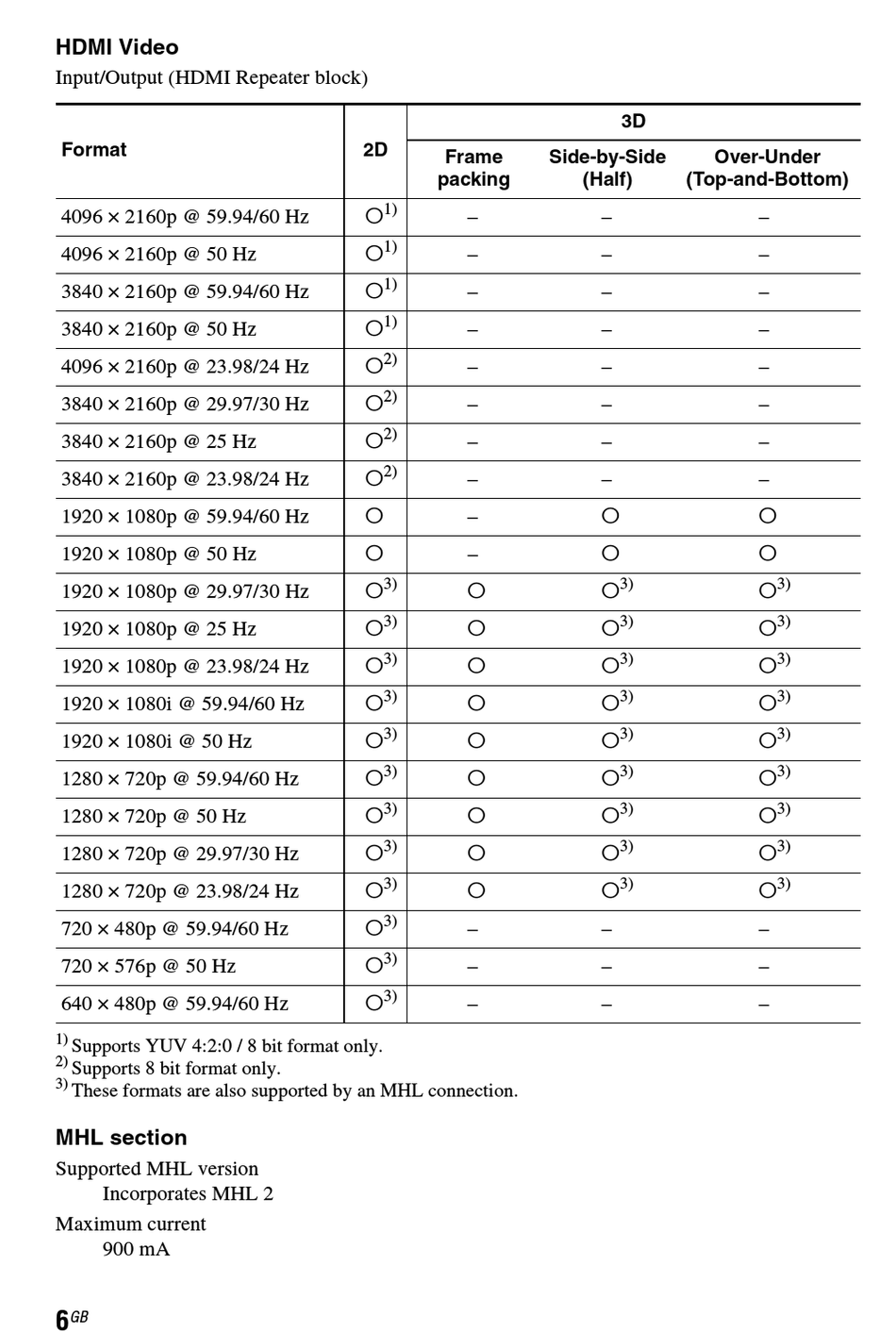 These formats are also supported by an MHL connection.