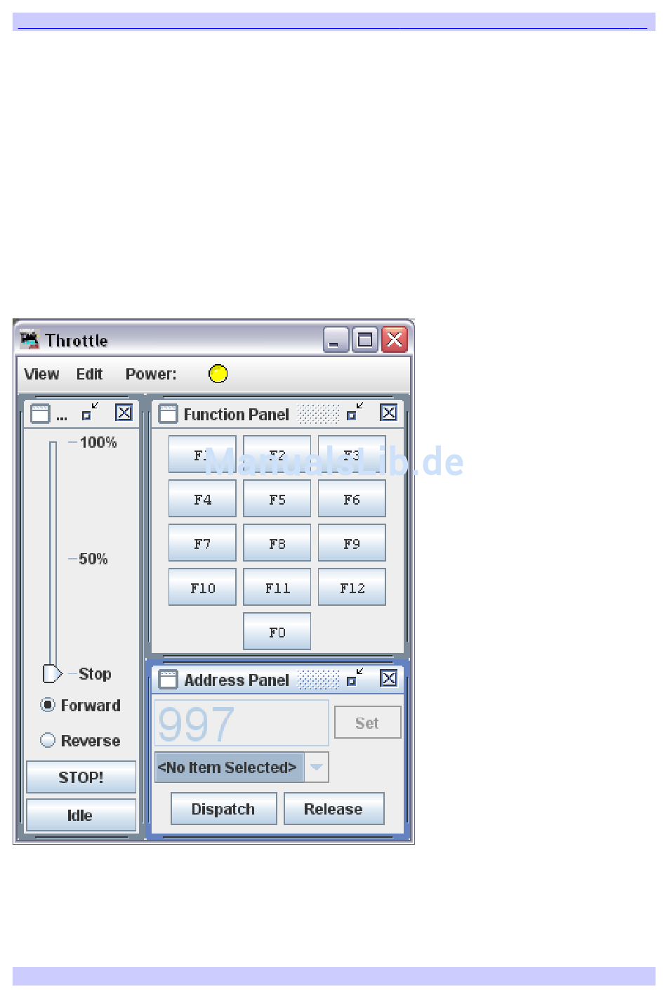 Strom zum Gleis einzuschalten. Die SPROG II Power-LED blinkt, wenn das