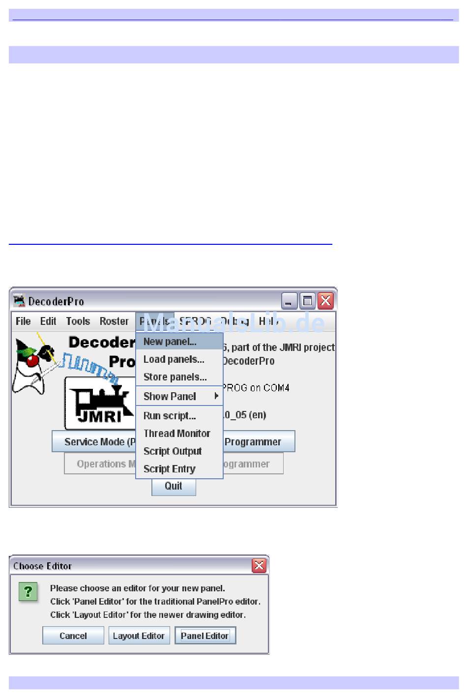 Klicken Sie im Hauptfenster von DecoderPro auf "Panels" und wählen Sie