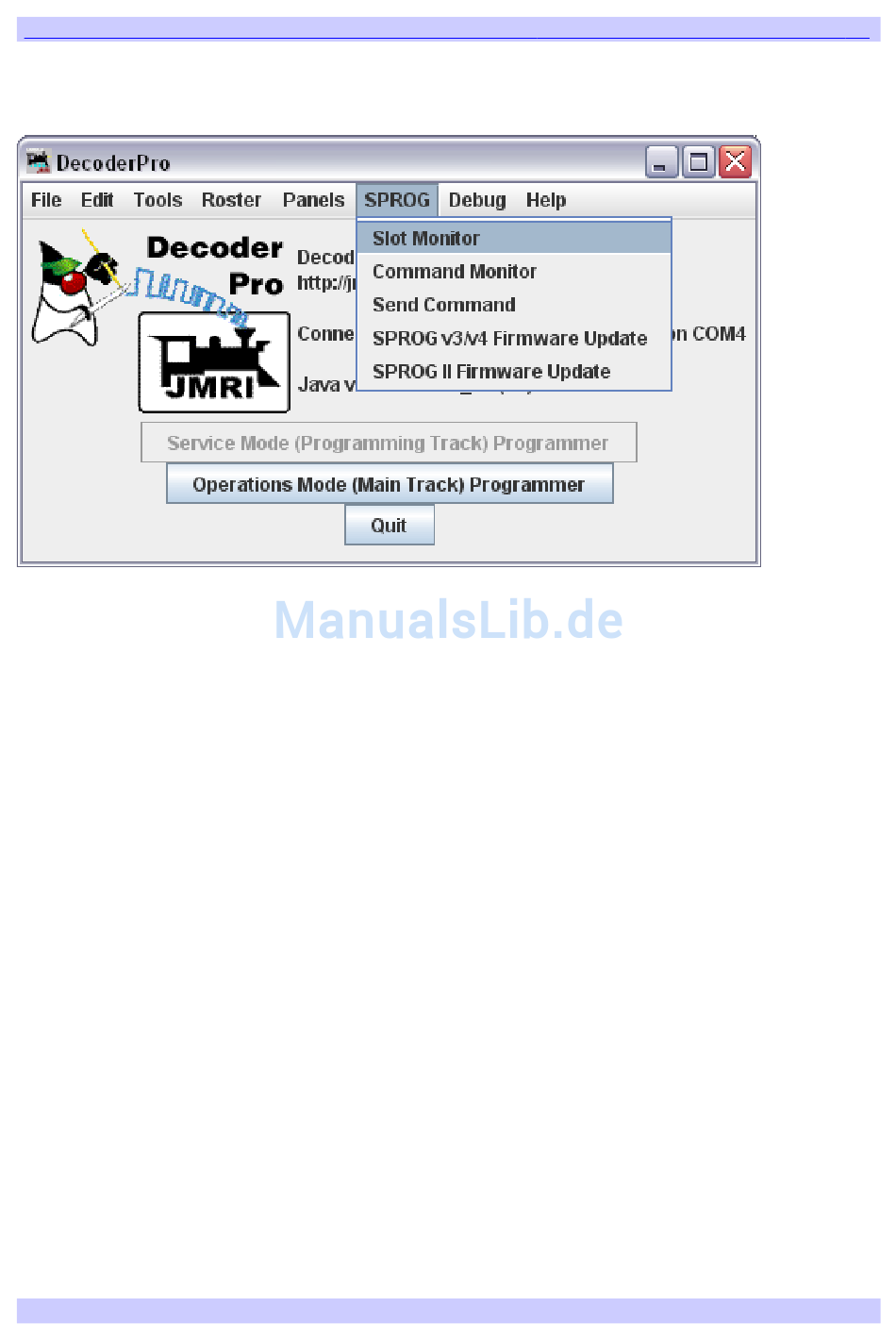 monitor", der vom SPROG-Menü auf dem DecoderPro Hauptfenster erreicht