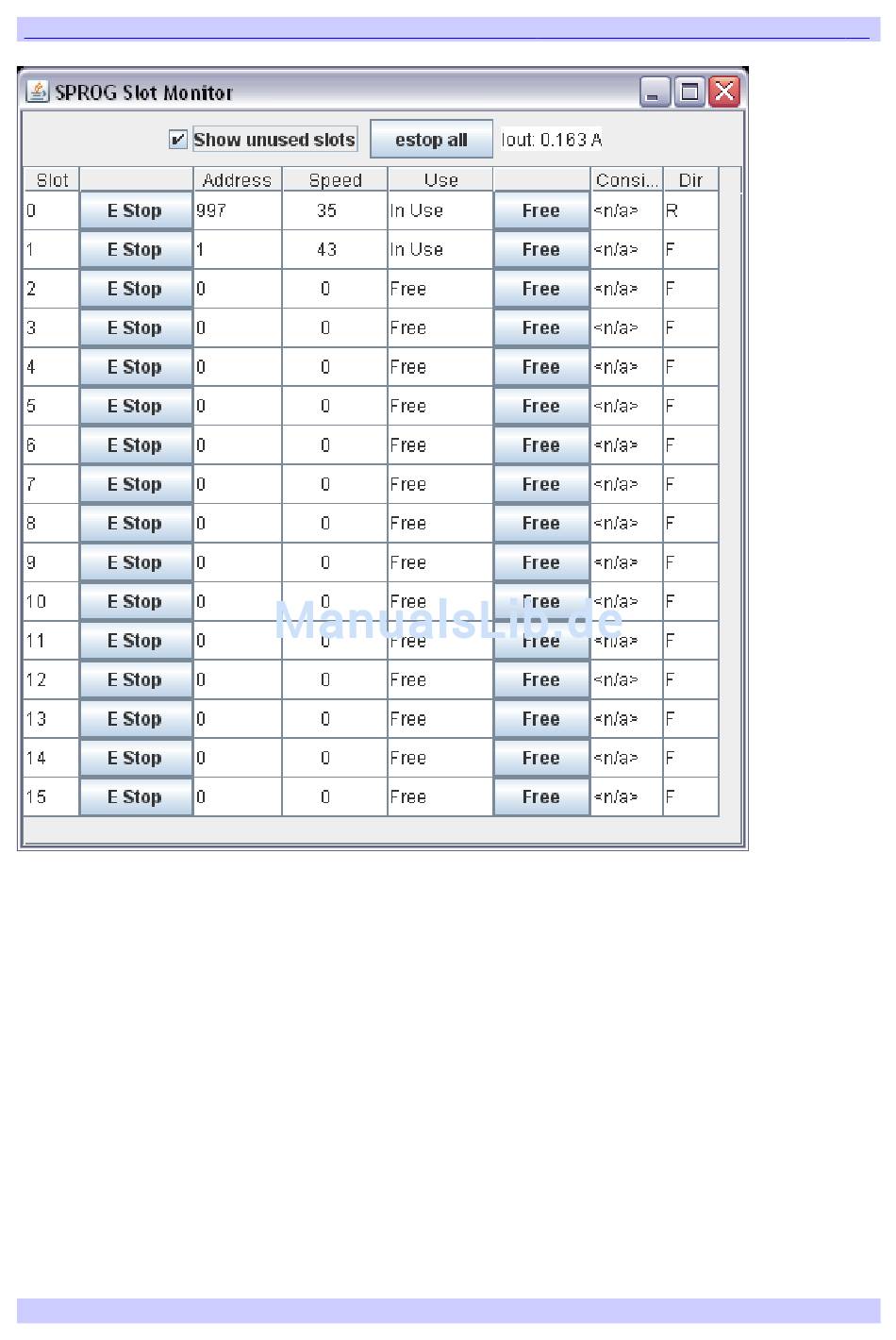 In diesem Beispiel liefert SPROG II 163mA an die Anlage. Eine Lok mit der