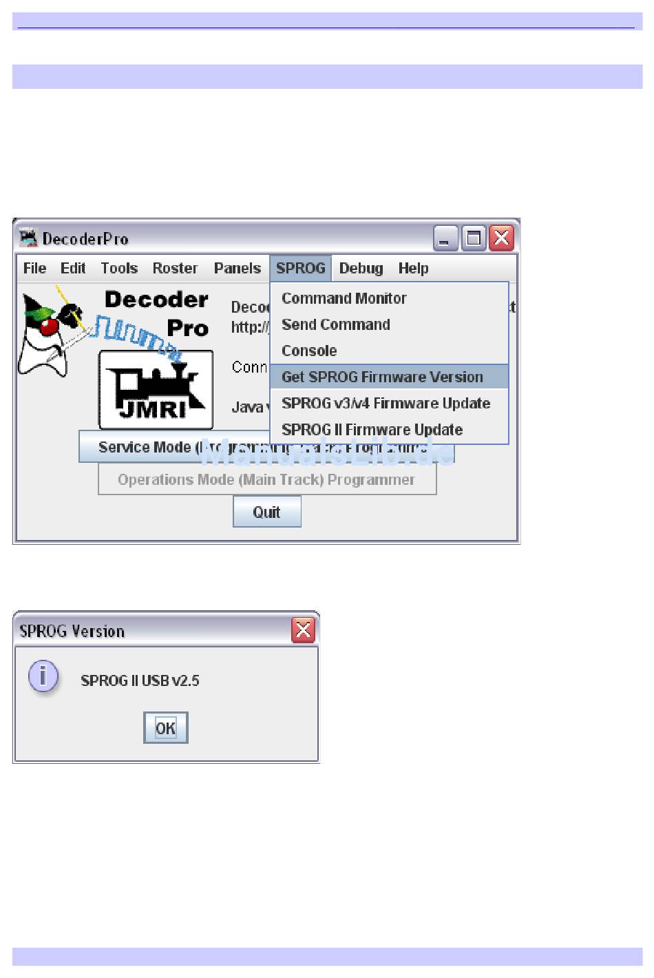 Wählen Sie "Get SPROG Firmware Version" aus dem SPROG-Menü.