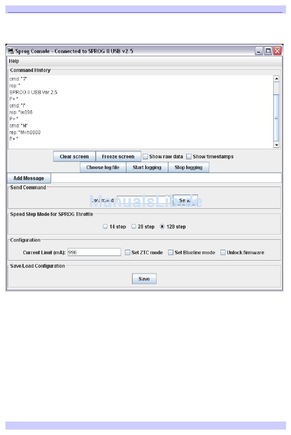 Command Monitor (wählbar aus dem SPROG-Menü) und zeigt die Befehle