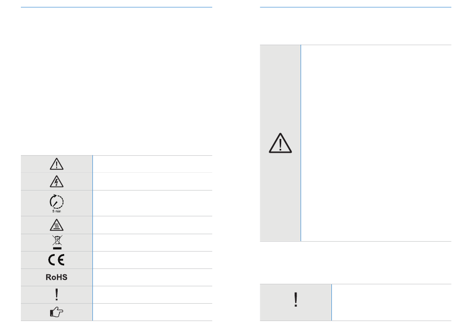 Signalisiert Gefahr durch Stromschlag und gibt die Zeit (5 Minuten) an die nach dem Ausschalten und