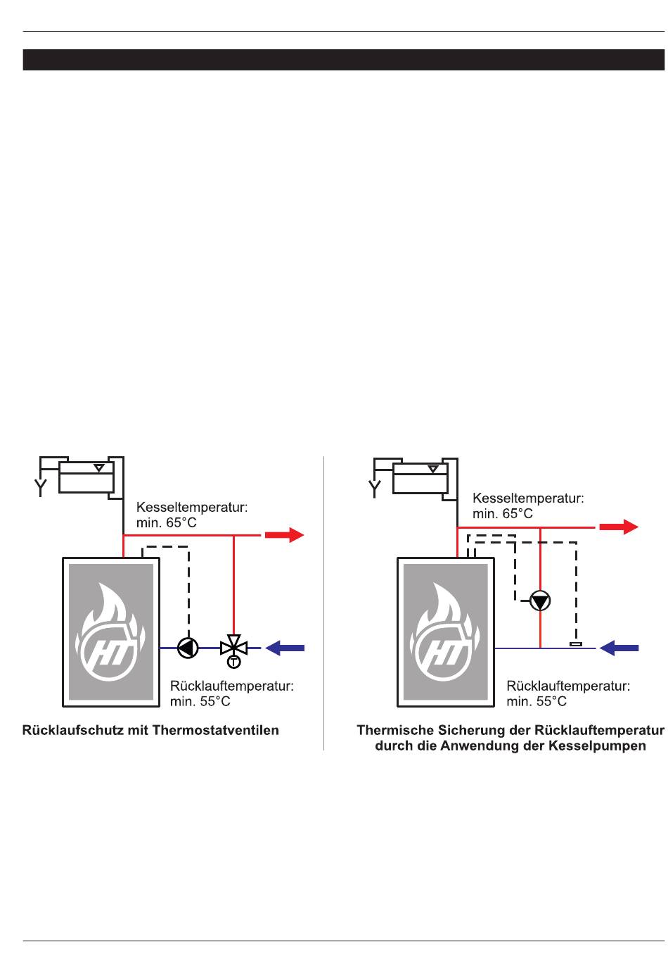 Installieren Sie ein Temperaturventil, um zu verhindern, dass der Rücklauf des Kessels mit einer Temperatur von