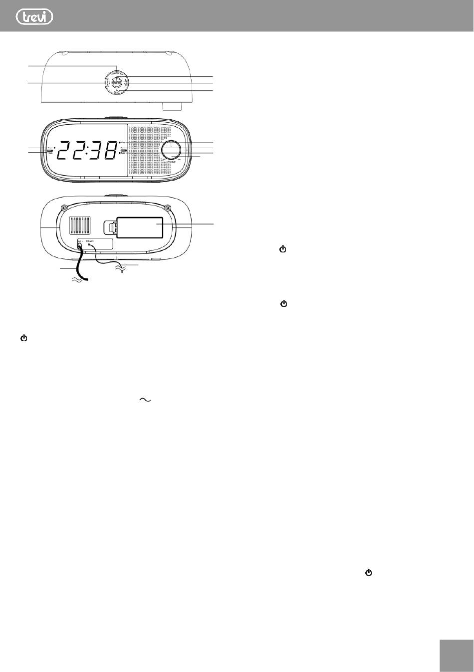 Unwind the radio antenna (13) on the back of the clock radio. Extend
