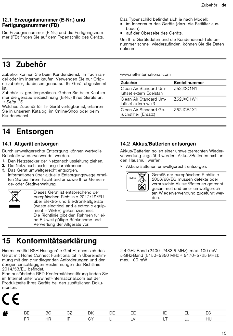 verwertung zugeführt werden. Akkus/Batterien nicht in
