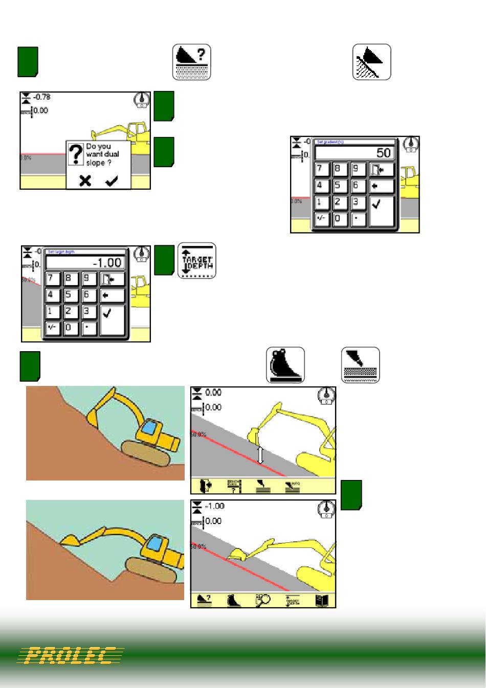 Die X Taste drücken, um Baggern mit einer Neigung