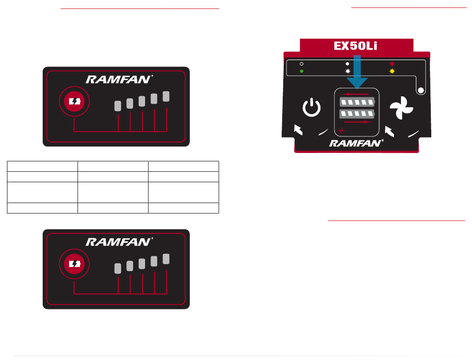des Ventilators angebracht ist, auf der Unterseite der Batterie zeigen die Leuchten den