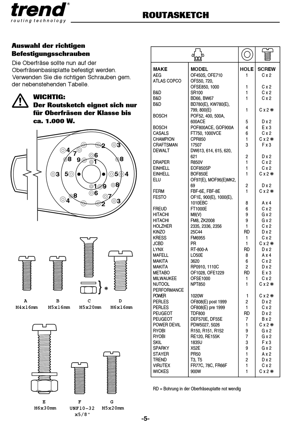 RD = Bohrung in der Oberfräseuplatte not wendig