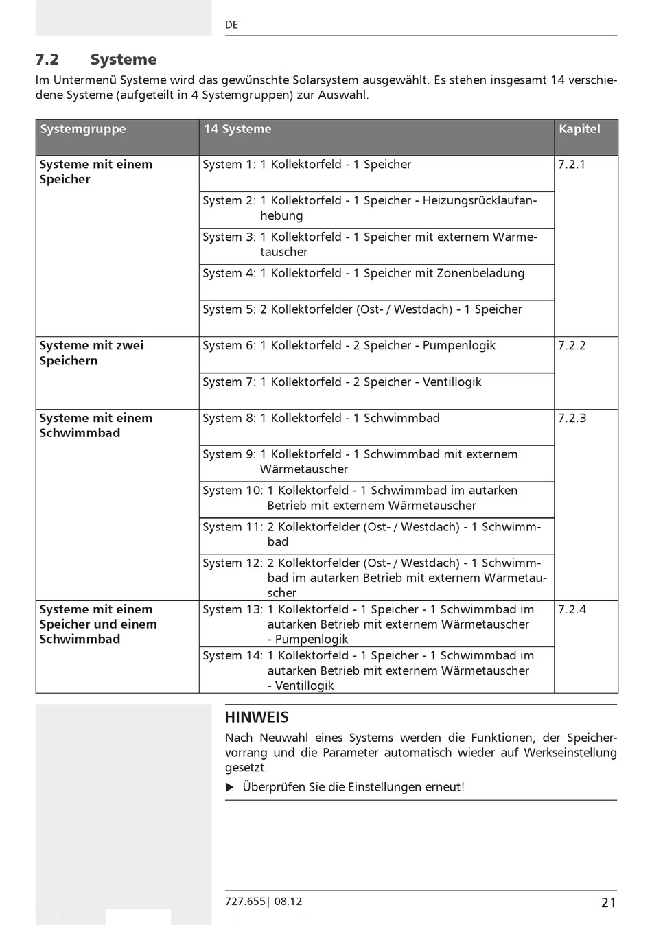 dene Systeme (aufgeteilt in 4 Systemgruppen) zur Auswahl.