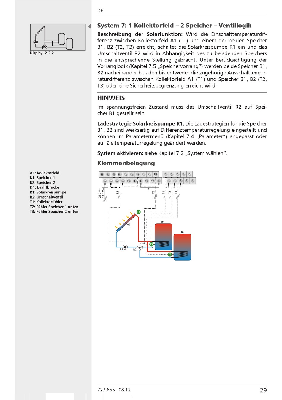 System 7: 1 Kollektorfeld – 2 Speicher – Ventillogik