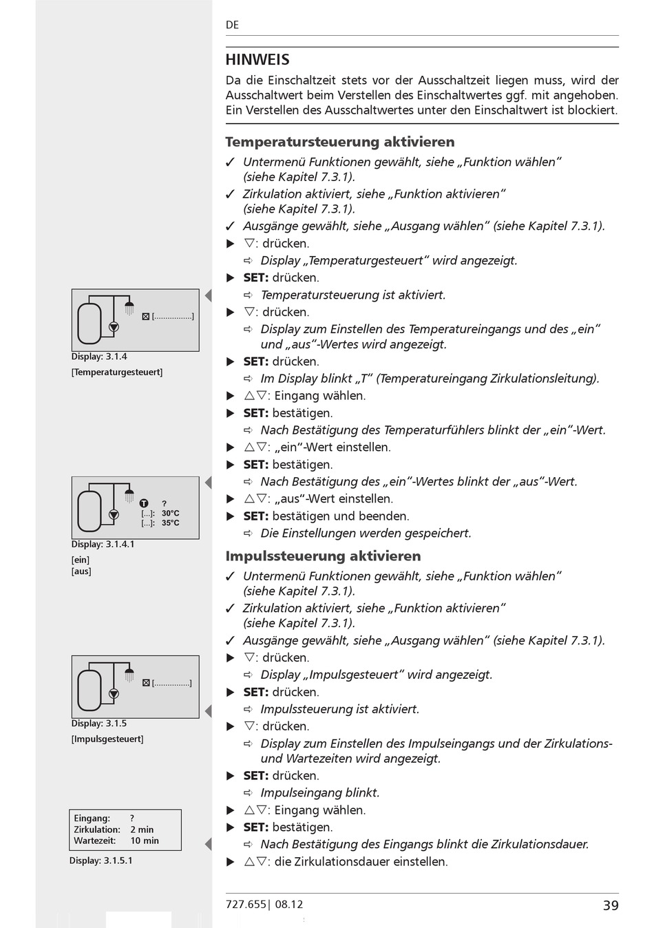 Zirkulation aktiviert, siehe „Funktion aktivieren"