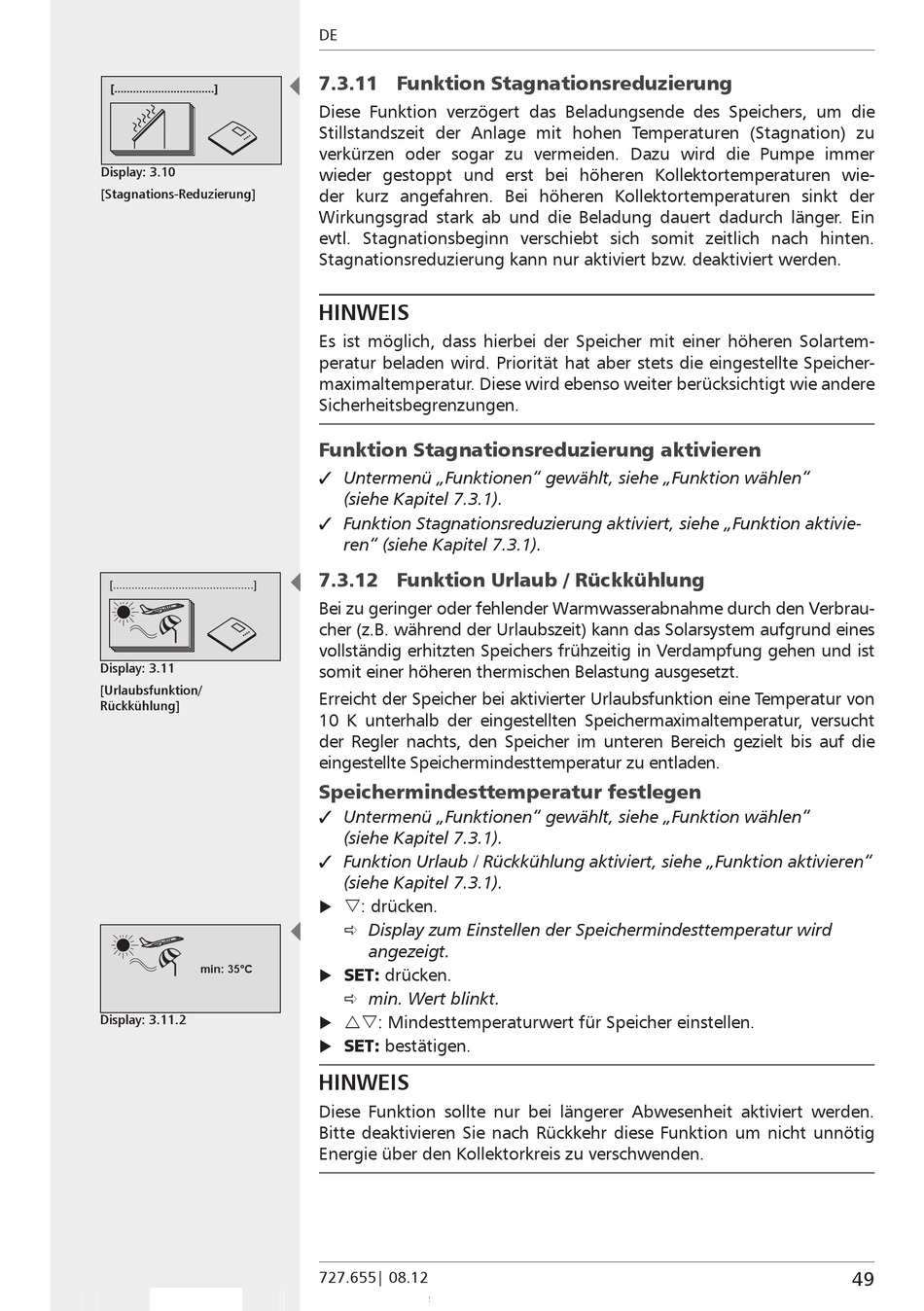 Funktion Stagnationsreduzierung aktiviert, siehe „Funktion aktivie-