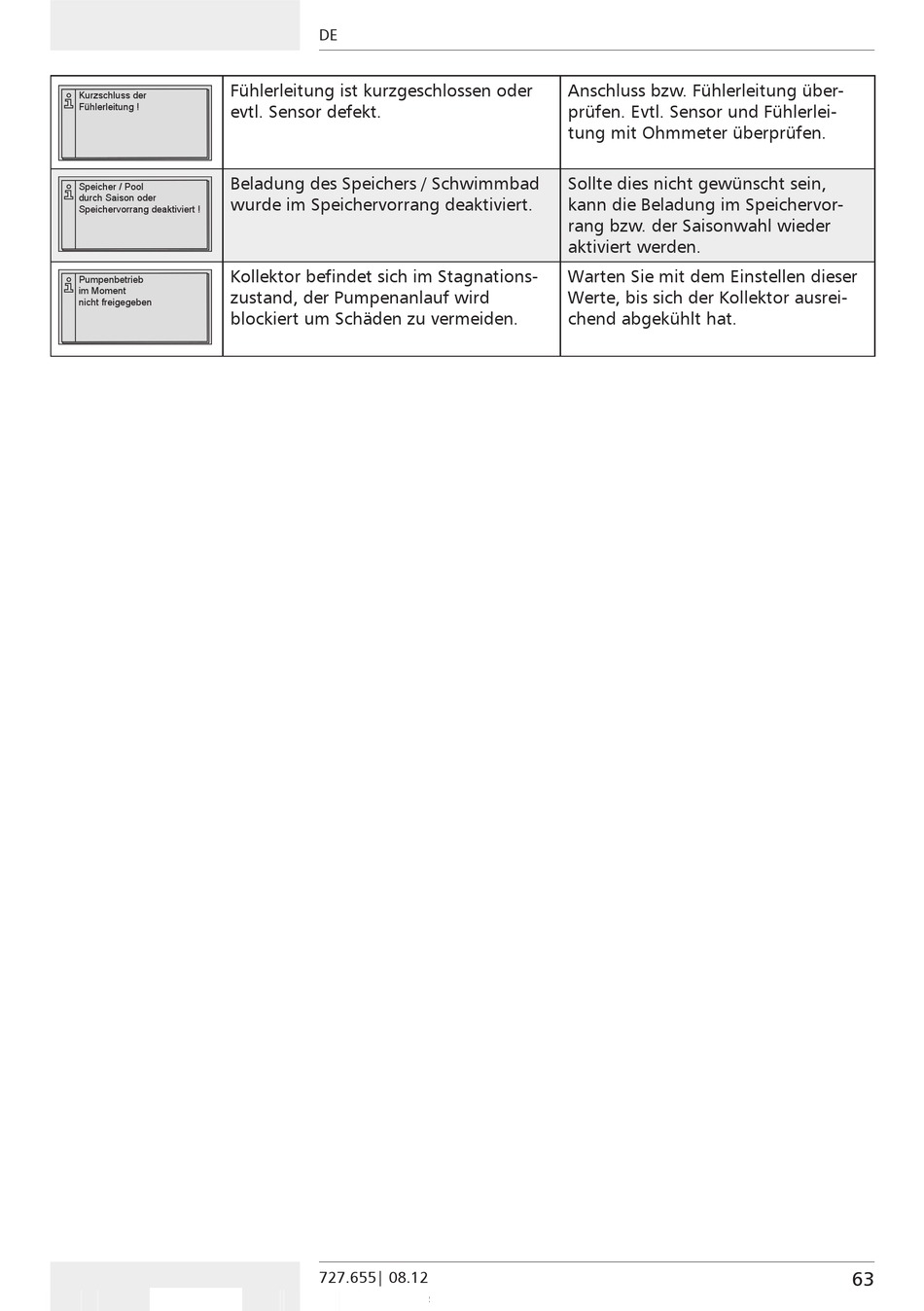 prüfen. Evtl. Sensor und Fühlerlei-